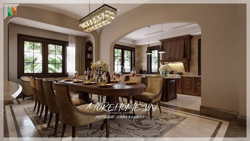 Gợi ý thiết kế phòng ăn liền kề phòng bếp cho biệt thự, nhà phố có diện tích rộng