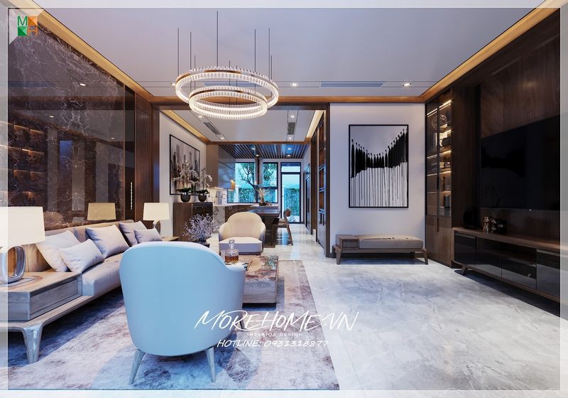 Với phòng khách biệt thự được sắp xếp bố trí nội thất phù hợp với không gian của phòng tạo cảm giác ngôi nhà rất gọn gàng.