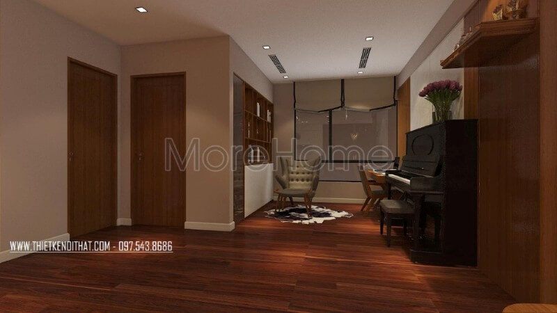 Khu vực làm việc chung cư được thiết kế mới lạ và ấn tượng bằng cách kết hợp không gian thư giãn cho gia chủ.
